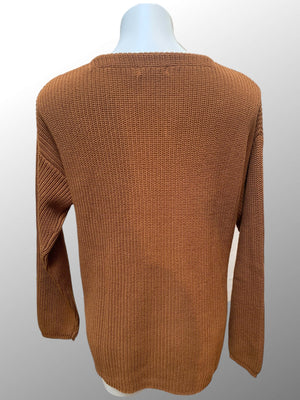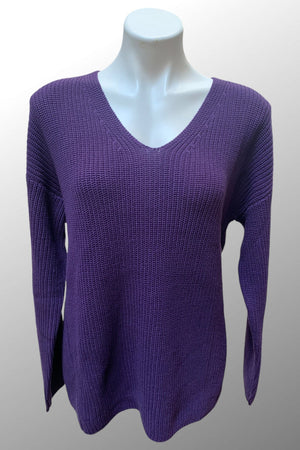 Beautiful 100% certified organic cotton knit sweater! Chunky rib knit body with fashioned neckline and seams down front sides.Generous fit, easy, and comfy in beautiful colors. Organic cotton means no pesticides, or insecticides for Earth or your body - win-win solution.