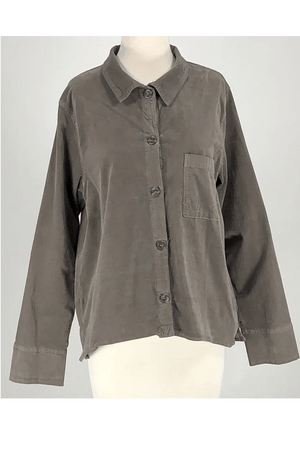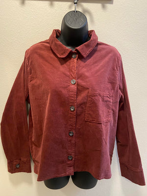 A very nice buttoned-down jacket/shirt out of the mini corduroy fabric. Super soft cotton. A true pleasure to wear. Large front chest pocket, shirt is shorter in front, slightly longer and rounded in the back.