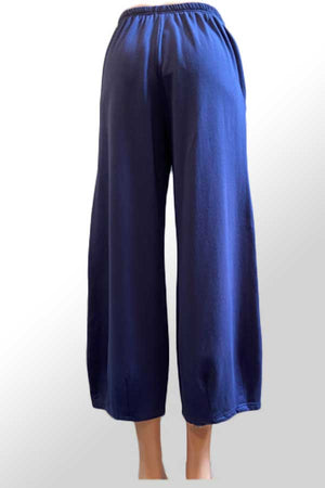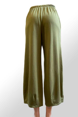 So soft! Nice medium-weight pants with light fleece texture inside. Pants are cropped style, with darts gathering the bottom of the legs lightly together. Covered elastic waist, two in-seam pockets. Pants are perfect for everyday life, comfortable and buttery soft. Generously sized.