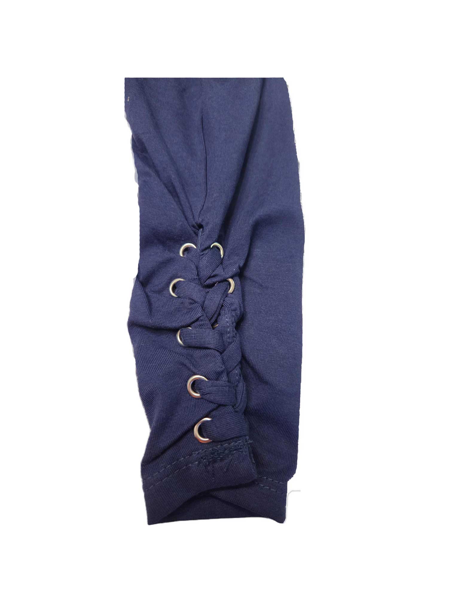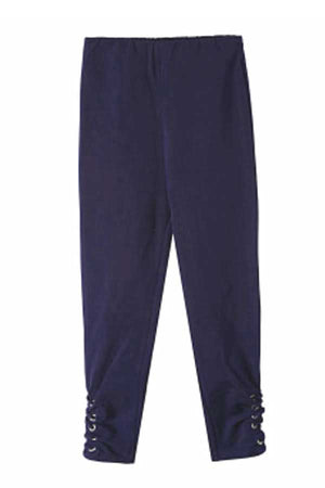 Organic Cotton girls' leggings with cool laced-up details and lightly gathered pant legs. bottoms. Color is Navy blue (called here as Patriot Blue).