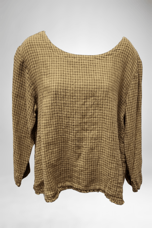 3/4 Sleeve Cotton Top - checkered texture
