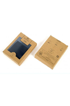 There is a small embroidered logo on the left thigh. A pair of these boxer briefs come in a recycled paper case.