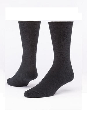 These comfortable socks are made with an organic cotton blend. These socks have comfortable cushioning for your all-day comfort. They feature a mid-calf height, organic cotton cushion bottom to bring you comfort all day with a non-binding roll top, gentle snugness, comfortable tapered toe, and a feature soft-cushiony foot-bed.