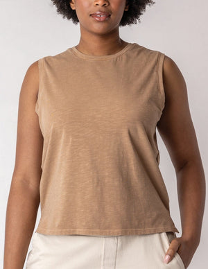 Crafted from super soft 95% Regenerative Organic Certified (ROC) slub jersey cotton, this sleeveless tee offers gentle texture. Its loose fit and straight bottom hem grazes the hip, making it an ideal layering piece for any season. Soft, breathable, and lightweight - this garment is ethically made.
