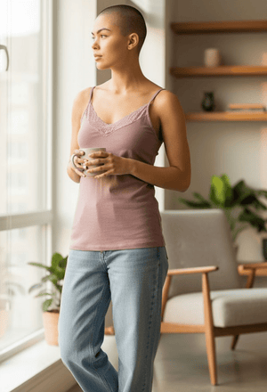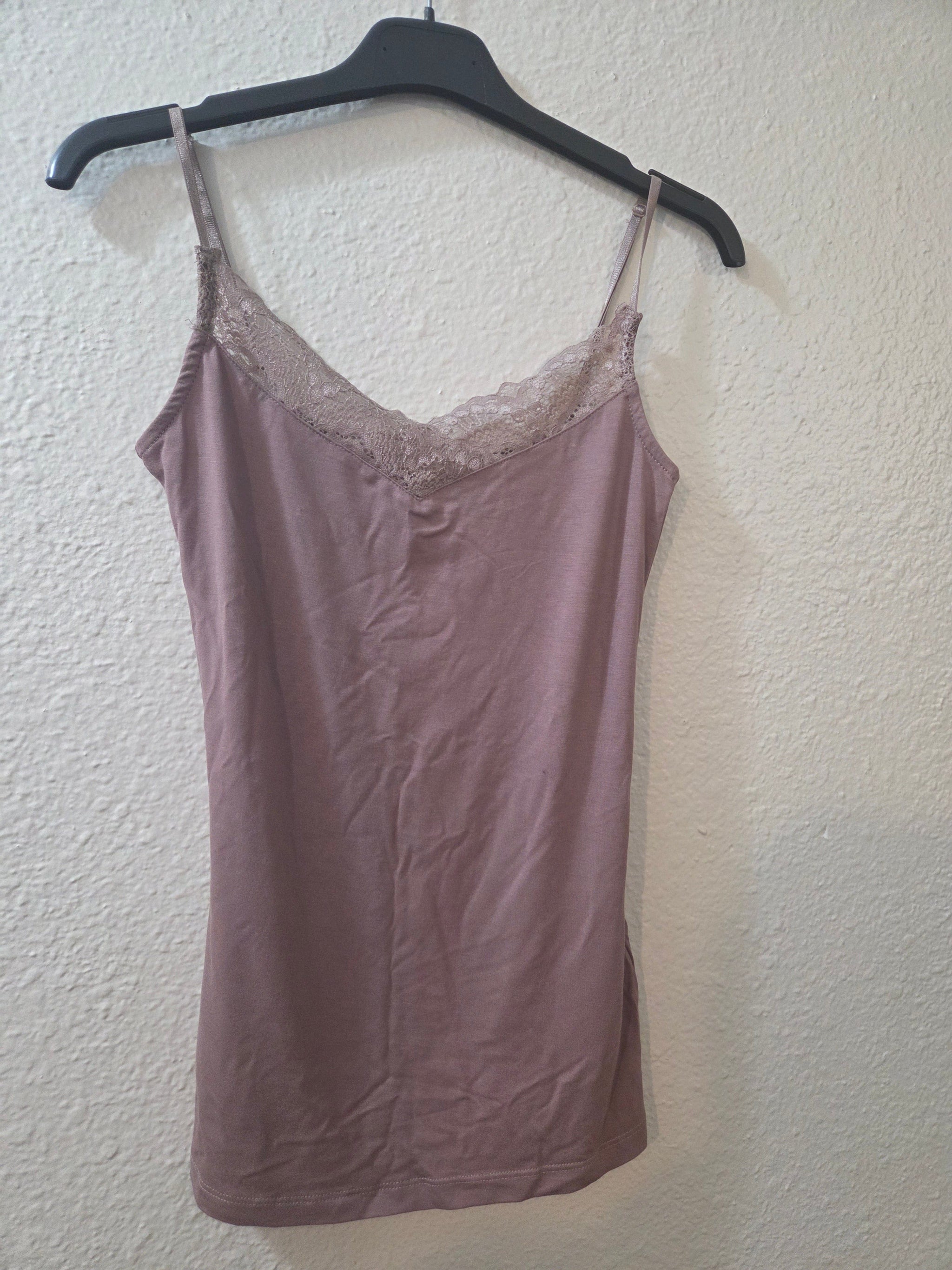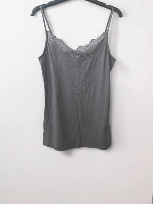 Experience eco-friendly comfort with our lace camisole. Crafted from sustainable materials, this cami offers the perfect blend of style and comfort. Nice smooth camisole with a pretty lace finish in front. The straps are thin and adjustable. Perfect for layering, with plenty of a feminine touch.