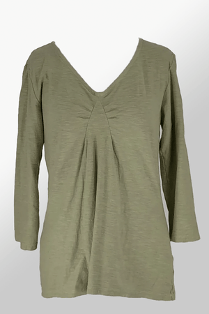 Our most popular cotton and linen blend tee - it is perfect for all body types. Nice V-nMade by a long-time San Francisco company and sewn and dyed completely in the U.S.A. More information is in the tabs below. Fabric: 70% conventional cotton/ 30% linen