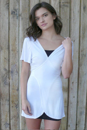 A beautiful light robe for when you just need a bit of cover-up, great to walk to the pool or lounge in the evening. Wrap-around style is easy and comfortable. The fabric feels like silk, super nice to the skin, this robe is light and feminine. You can play with a waist tie for varied effects. The robe is very gentle on the skin, soft and luxurious.