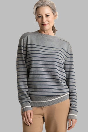 Crafted from 100% Regenerative Organic Certified® cotton, this flat knit sweater features a classic crew neck design. Includes rib detailing at the neck, cuffs, and hem, along with a forward shoulder seam for a subtle military touch. Lightweight for layering but warm enough to wear on its own, this sweater offers a casual and comfortable fit. For a unisex fit, consider sizing up.