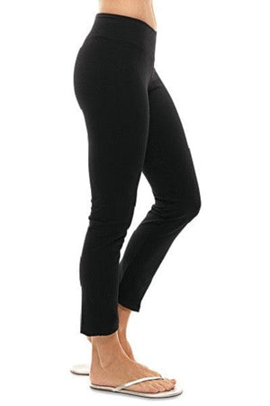 Great bamboo viscose and organic cotton yoga pants. Close to the body, ankle length (depending on your height), these pants stay in shape quite well. Very comfortable 3" wide waist of the same fabric doubled, no pinching, no elastic band. Great for yoga but the fabric is thick enough for any occasion. Our favorites!