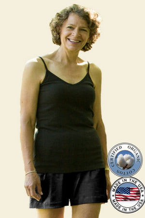 Comfortable, simple, no frill 100% organic cotton shorts. Shorts are made in the USA at a worker-owned cooperative. Lightweight organic jersey, 1.5" covered elastic waistband, comfortable enough to sleep in them or wear for lounging and casual life.